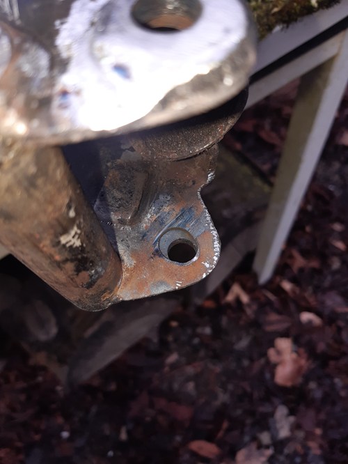 Bei Garelli waren die Konstrukteure damals schon recht auf Leichtbau getrimmt. Vier M 6er Schrauben halten das Kettenrad auf Position. Und wenn die alle vier fest gewesen wären, sähen die Löcher im Kettenradträger auch nicht ganz so Eierförmig aus