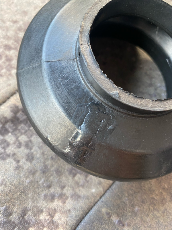 Als Nächstes muss ich das Luftfilter/Vergaser-Gummi reparieren. Das Gummi hat einen Riss und zieht falsch Luft. Dann brauche ich noch einen passenden Luftfilter und eben den 28er Dellorto