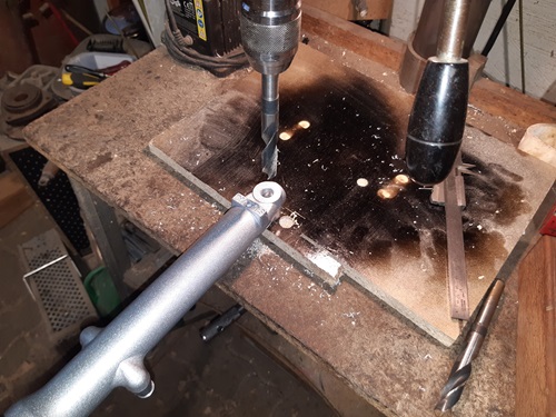 Bad Hersfeld und der 3 LMM stehen wieder auf dem Programm für kommendes Jahr. Die Teile für den P4 der GT4 hab ich ja schon lange von Graf Motoren zurück. Aber in der GT steckt ja jetzt ein giftiger P6, ist aber noch nicht gelaufen. Zu viele Überstunden, zu viel anderes Zeug. Egal, ich brauch für die Tour ein Moped. Also hab ich mal die zweite GT4 in Angriff genommen. Hatte viele Teile, also das Übliche. Komplettieren, strahlen, pulvern etc.. Die Federgabel war Schrott, also musste wieder was von Aliexpress her. Musste nur den Achsdurchmesser und den Haltenocken für die Bremsankerplatte anpassen. Die soll wohl an eine Suzuki 125 passen. Aber den Suzuki Schriftzug muß ich überkleben. Ich muß mit der Kleinen zum Tüv, Papiere machen lassen. Und der Schriftzug stinkt nach chinesischer Produktion