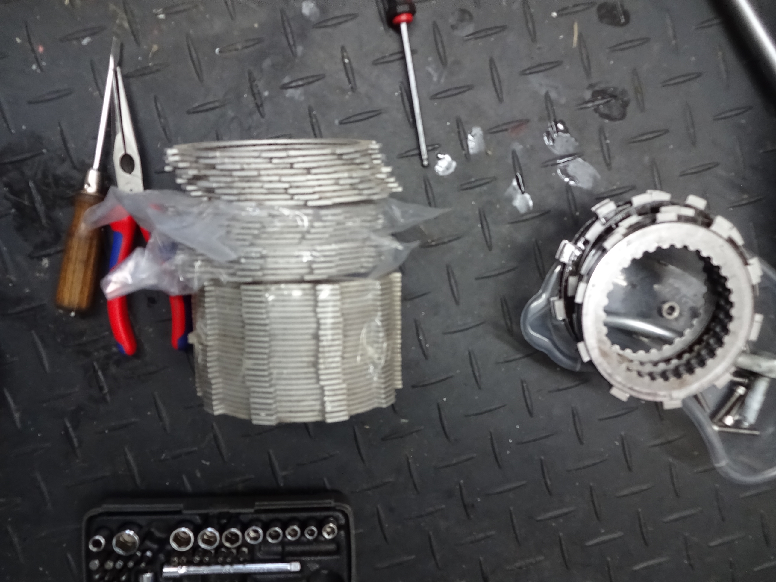 Das klärte sich aber, als ich die Beläge tauschte, die Kupplung klebt fürchterlich zusammen. Dieses Kleben, war so stark, das die Zähne abgehebelt wurden.