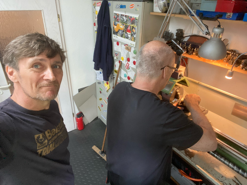Kalle selbst stellte sicher, dass auch alles ordnungsgemäß passt und warf sich unter mein Moped.