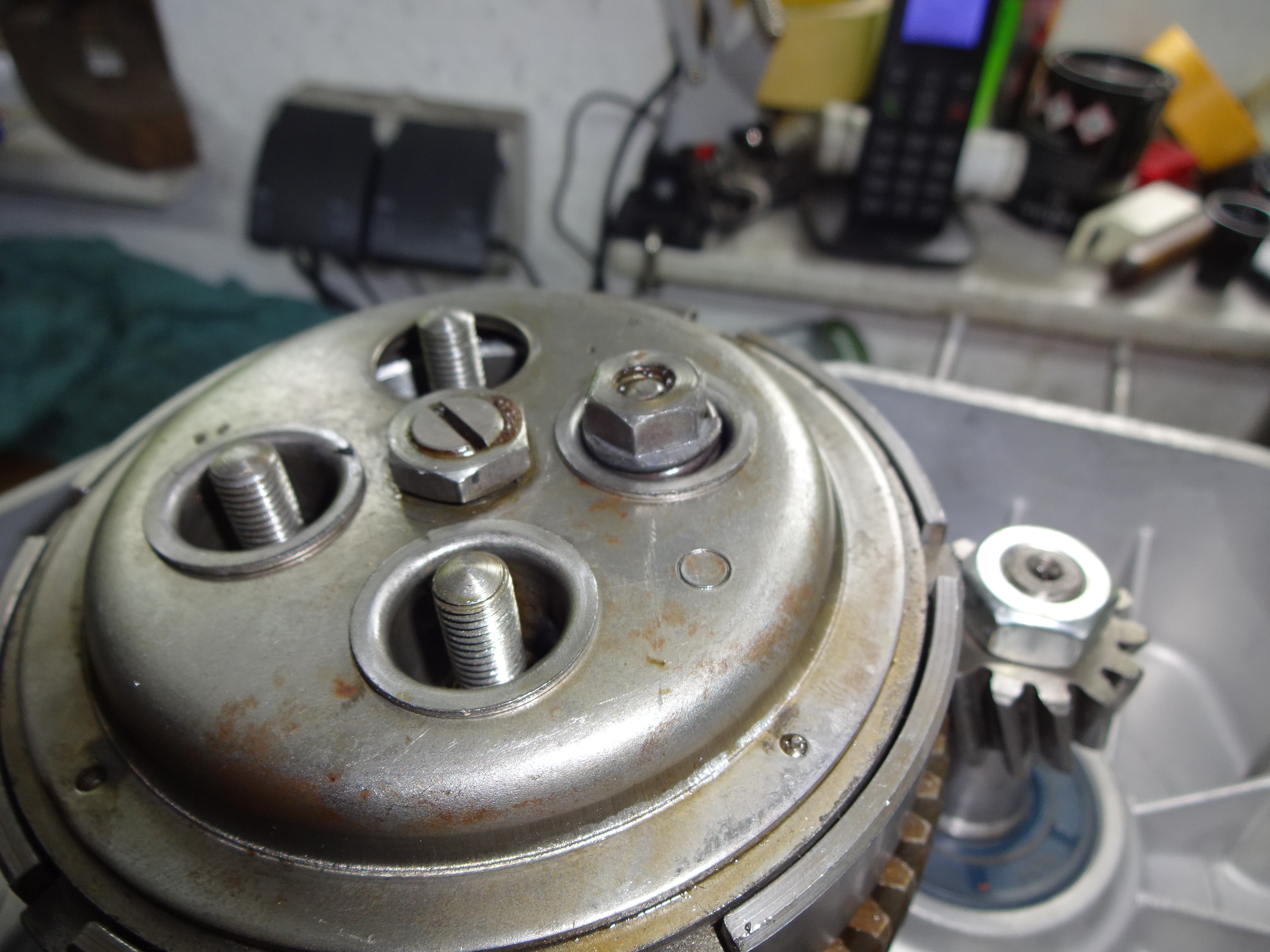 Weiter ging es mit der Kupplung und dem Spiel vom Korb. Das ging alles recht schnell, aber beim Festziehen der Kupplungsschrauben drehte eine durch.