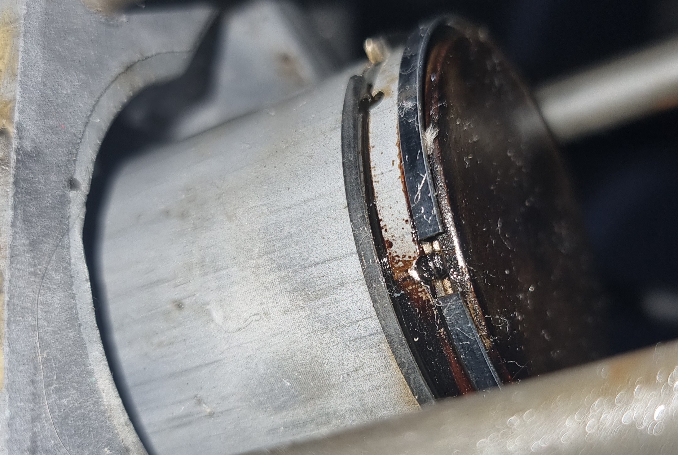 Jetzt hab ich den Zylinderkopf und den Zylinder ausgebaut um meinen Kolben zu begutachten und dann ist mir aufgefallen das die Arretierung des oberen Kolbenringes fast komplett gefehlt hat.