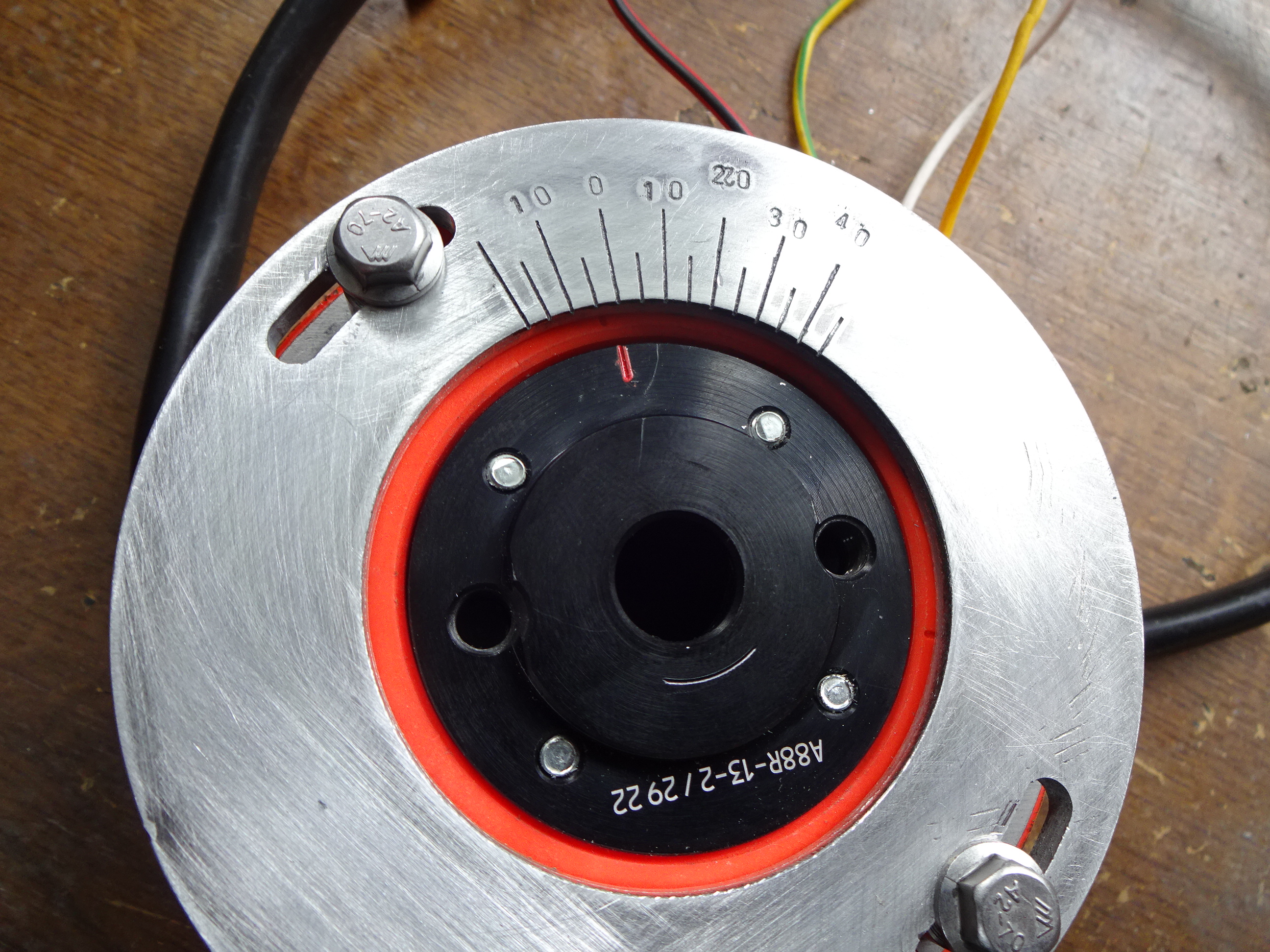 Dann noch eine Gradscheibe passend für die MVT erstellt, die stelle ich bei OT im Stand auf Null und dann mal alle 1.000 Umdrehungen abblitzen und die Werte notieren, bin gespannt was dabei raus kommt.