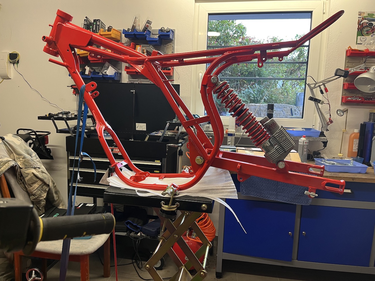 leider die letzten Wochen wenig Zeit gehabt, kaum weitergekommen. Moped ist aber nun doch komplett zerlegt und als nächstes steht Lackierung bzw. Pulvern an, danach geht's hoffentlich weiter...