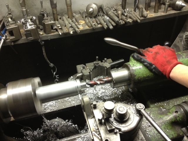 Auf der Drehbank habe ich mir einen 28mm Stutzen gebaut und auf dem anderen Bild den Zylinder bearbeitet.