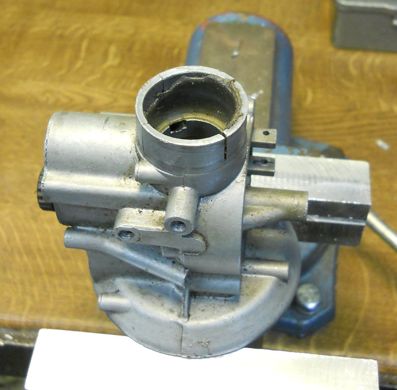 So sieht das nach dem Ausdrehen (passend zur Buchse) aus, man kann schön sehen wo die Vergaserbacken sich reingebogen hatten und wo nicht.