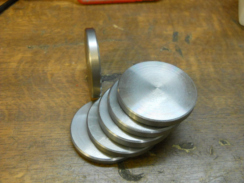 Jetzt auf der Bandsäge munter Scheibchen runter geschnitten, auf Maß plan gedreht und mit Fasen versehen.