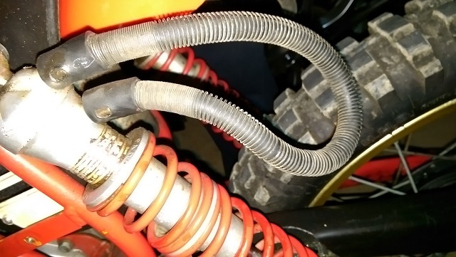Also was die Einbaulage angeht.... Schrauben raus, Dämpfer entnehmen, Dämpfer drehen und wieder einbauen, Schrauben rein und festziehen, Ausgleichschlauch mit Kabelbinder befestigen. :roll:
