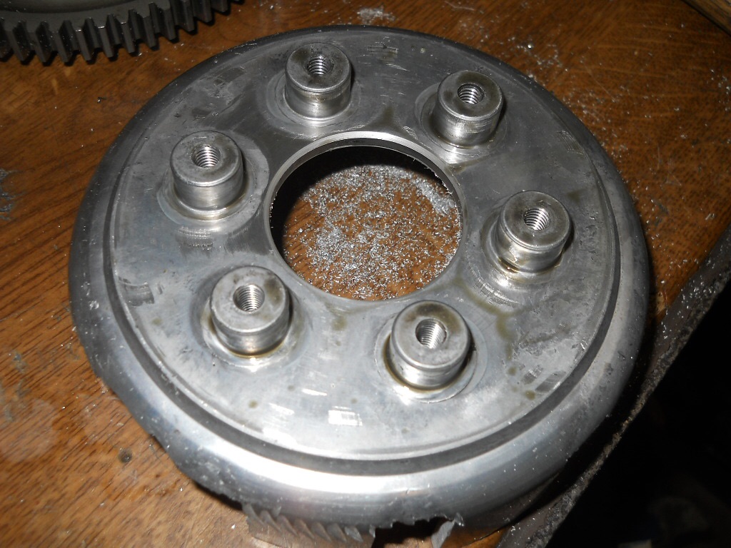 Hier jetzt mein Aufbau zu Fräsen des Kupplungkorbes. Passte alles noch so grad unter meine Fräse mit dem langen Fräser