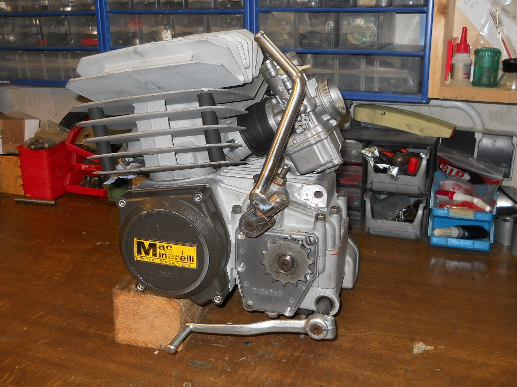 Naja so sieht der Motor erst mal aus, wenn auch ohne Zündung und noch ein paar fehlende Schrauben. Der Kickstarter ist übrigens der von der Umbauaktion.