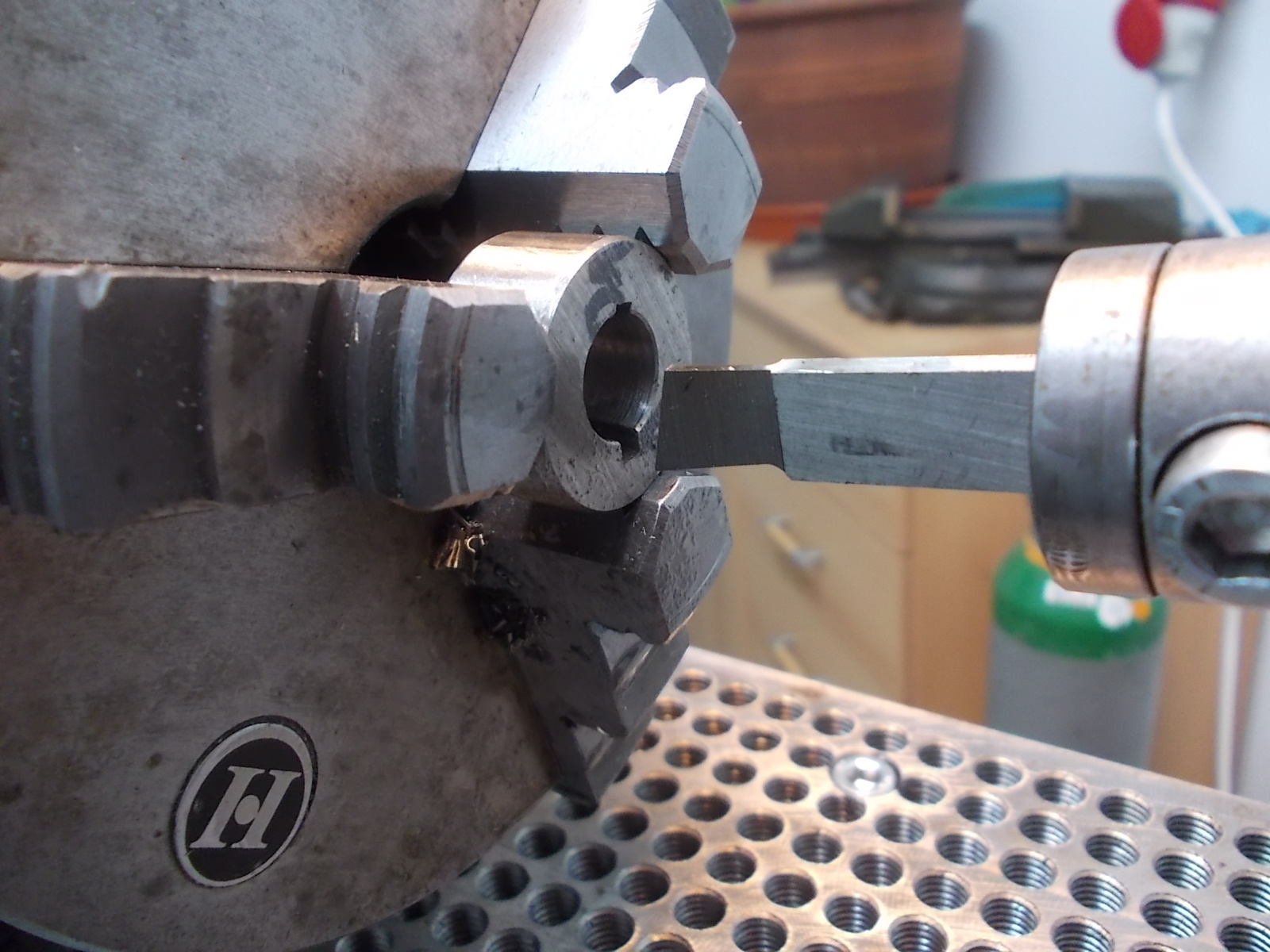 Dann noch einen passenden Halter für ein zweckenfremdetes Abstechschwert gebaut und in ein paar Testabfallstücken geübt.