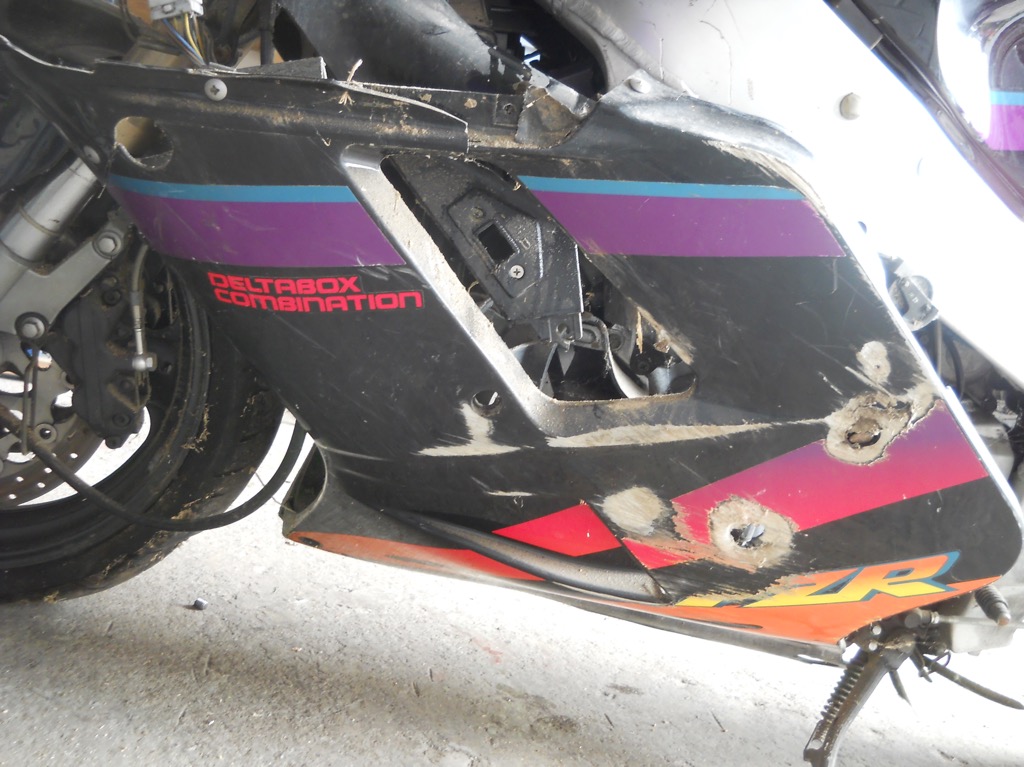 Hatte die Yamaha FZR 1000 vor 21 Jahren neu gekauft und 2006 in ne Wiese beworfen. Nach über 400km Kurvenheizerei einfach unaufmerksam gewesen und vor ner Kurve überbremst. Kein Graben oder sonst was im Weg gewesen, aber ein Maulwurfshügel auf der Wiese verursachte totzdem ne 360 Grad Rolle. Wollte die erst verkaufen, aber mangels Interessenten zur Seite gestellt, für ein evtl. Streetfighter-Projekt.